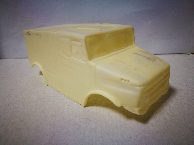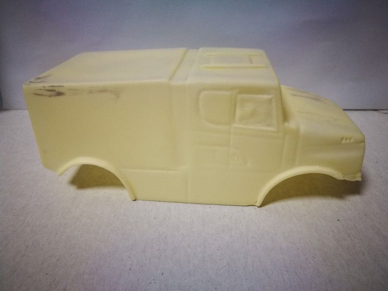 Carroceria en kit blanca para pintar del camión Scania Torpedo de Raid, para montar sobre chasis de batalla 107mm. Incluye cockpit de lexan con cabezas de resina, red y cristal delantero de lexan.