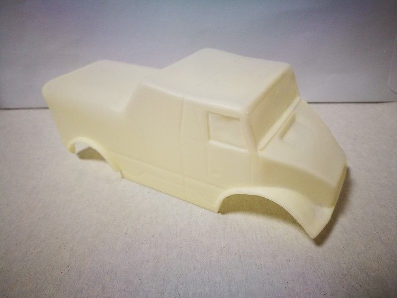 Carroceria en kit blanca para pintar del camión Tatra Jamal EVO 4 de Raid, para montar sobre chasis de batalla 107mm. Incluye cockpit de lexan con cabezas de resina, red y cristal delantero de lexan.