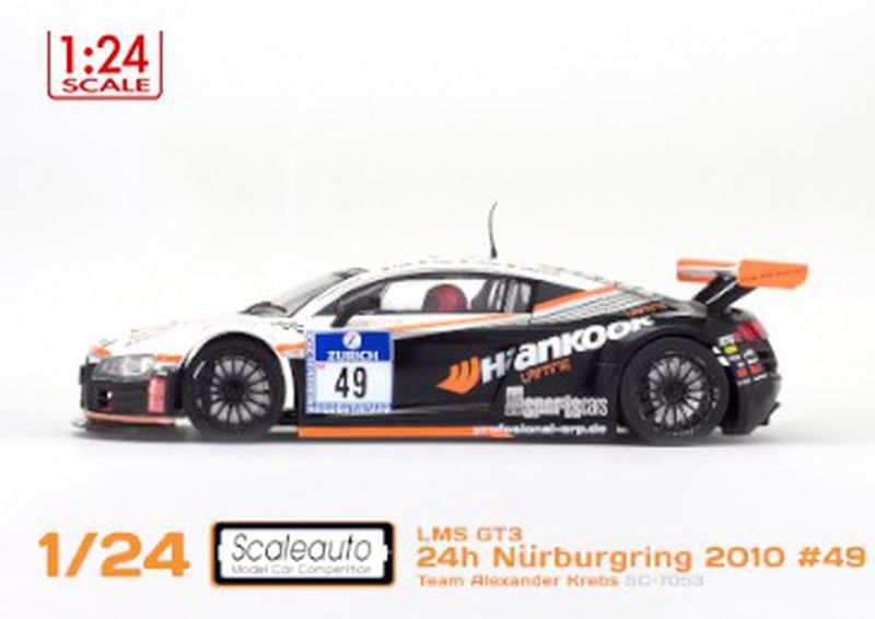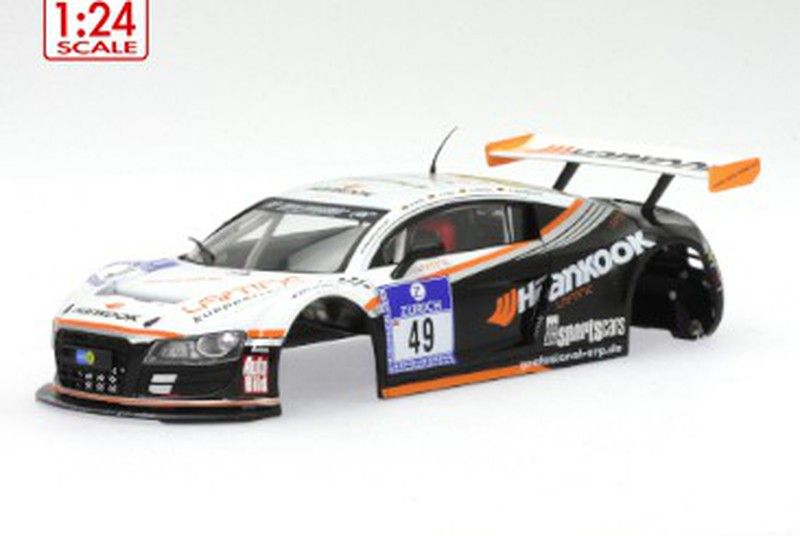 Carroceria a escala 1/24 de Scaleauto Audi R8 LMS 24H. Nurburgring 2010 dorsal 49 Hankook.