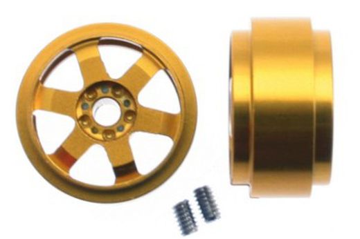 Llanta aluminio 16,2x8,5 mm Jarama, tornillo de fijación M-2, color dorado, servido en bolsa con 2 unidades.