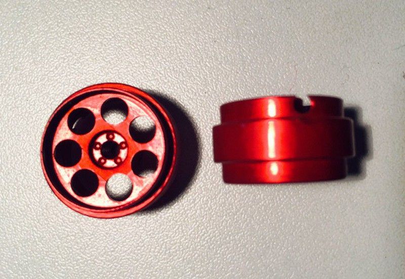 Llanta aluminio para ejes de 3/32 con tornillo de M2.5 de 18,7x10,5mm, modelo R4, color rojo, 2 unidades.