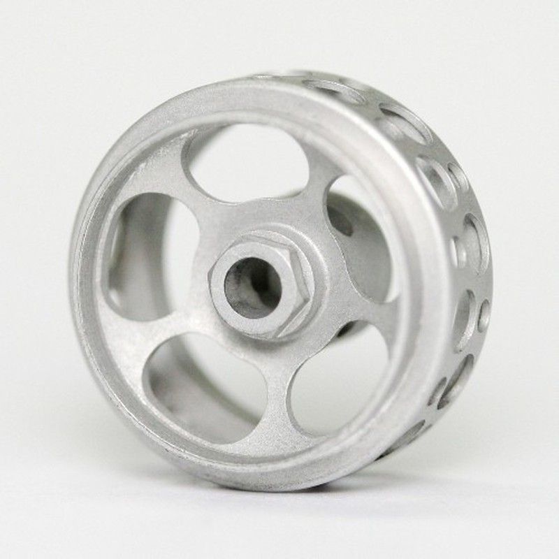Más informaciónEste nuevo modelo, a diferencia de la llanta Merkuro, se ha fabricado en magnesio y como mínimo ha aumentado su rigidez en un 40% respecto de esta. Este porcentaje se ha conseguido gracias al nuevo diseño en arco invertido que ya utilizamos en anteriores modelos.También hemos reproducido la tuerca central, ya realizado en el modelo BBS y MONACO, para dotarla de mayor realismo sin renunciar al dinamismo.Como el resto de llantas, utiliza la métrica de Sloting Plus, la M2.5. Este nuevo modelo carece del saliente del buje, es decir, éste esta completamente enrrasado respecto del ala y la anchura total de cada medida es de 8.5 ó 10 mm. respectivamente. El buje enrrasado nos permitirá ganar unas décimas en aquellos modelos y preparaciones que lo precisen.