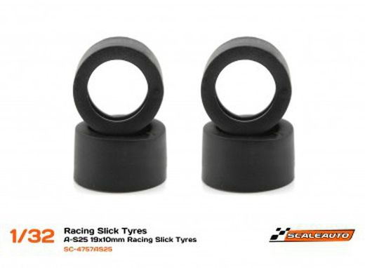 Neumático de Goma A-S25 19x10mm Racing Slick (Shore 25) para Llantas de 15,8 a 17mm. Bolsa con 4 unidades.