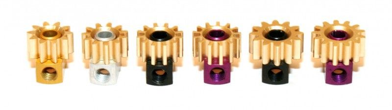 Más informaciónEste nuevo piñón es un 30 % mas ligero que la anterior serie y el cuerpo de aluminio dispone de mas espacio para el roscado, con las indiscutibles ventajas que esto supone. El espárrago es el de la métrica Sloting Plus, M2.5 Hemos anodizado el cuerpo con distintos colores para su facil identificación, Z10 oro, Z11 aluminio, Z12 negro y Z13 morado. Su diseño sigue conservando la virtud de poder extraer el piñón sin la necesidad de tocar la corona. Con el piñón extraíble es mas sencillo cambiar la relación de transmisión y además permite un ajuste preciso con la corona. Hemos incluído dos espárragos allen para un equilibrado perfecto pues en el eje motor las revoluciones són máximas y un desequilibrio puede tener consecuencias fatales para el motor.